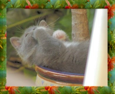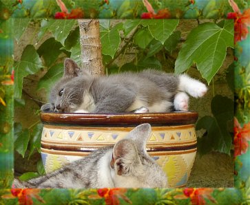 Der Lieblingsplatz der Dicken ist momentan eindeutig im Blumentopf